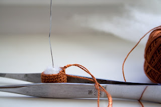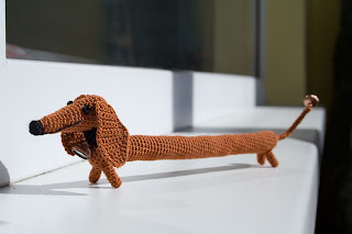 В тоненькое тельце таксы наполнитель набивать сложно, поэтому приходится использовать пинцет.